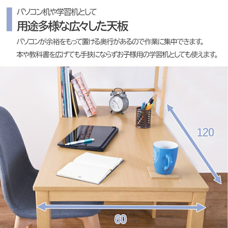 棚付デスク ダークブラウン THU2090948300 インテリア 寝具 ユニットデスク ラック付 フック付 可動棚 天然木 耐久性 利便性シンプルデザイン 機能性 多用途 軽量 コンパクト お洒落 オフィス家具 ワークスペース 東谷 デスク 幅120cm ラック付き 木目調パソコン。
