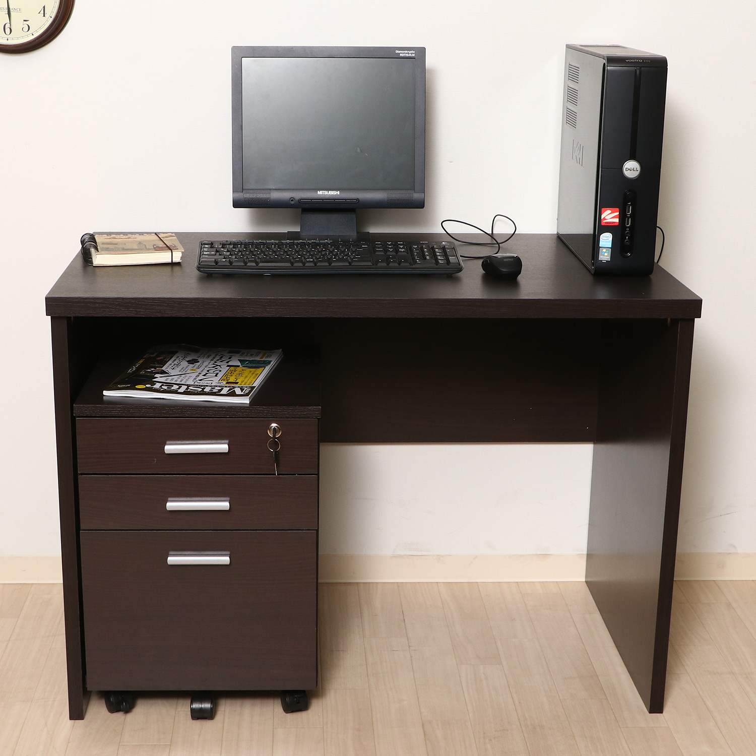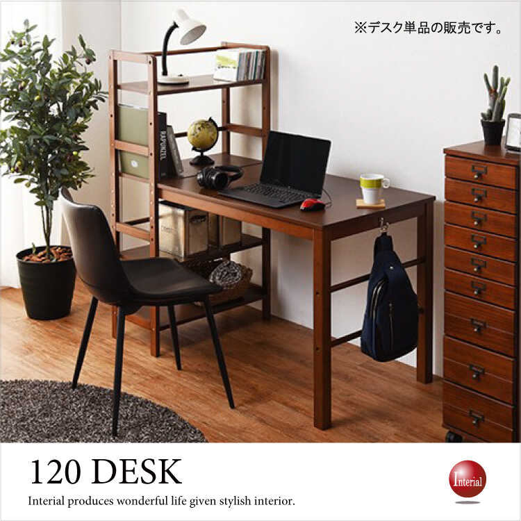 DE-1964 収納ラック付きパソコンデスクダークブラウン120cm。