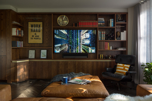 ダークブラウン×黒でまとめた大人テイストのリビング - 暮らしのデザイン。