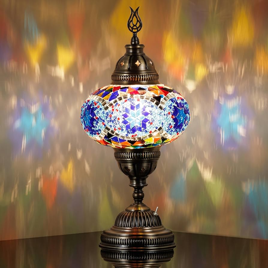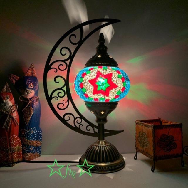 ボヘミア調トルコテーブルランプ モロッコ風照明スタンドライト 手作りモザイクステ。
