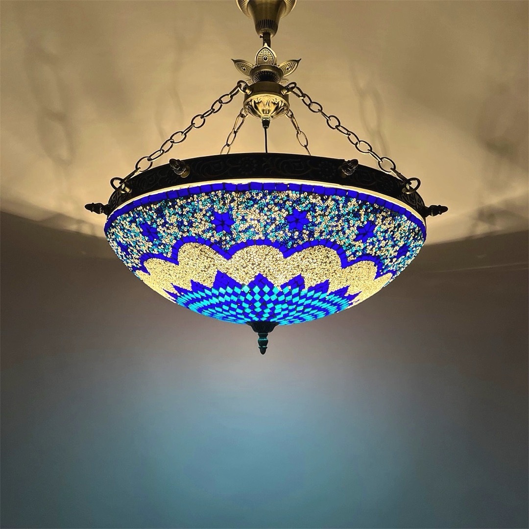 ボヘミア調 トルコ モロッコ風ペンダントライト 手作りモザイクステンドグラス アンティーク調 シャンデリア 天井照明。