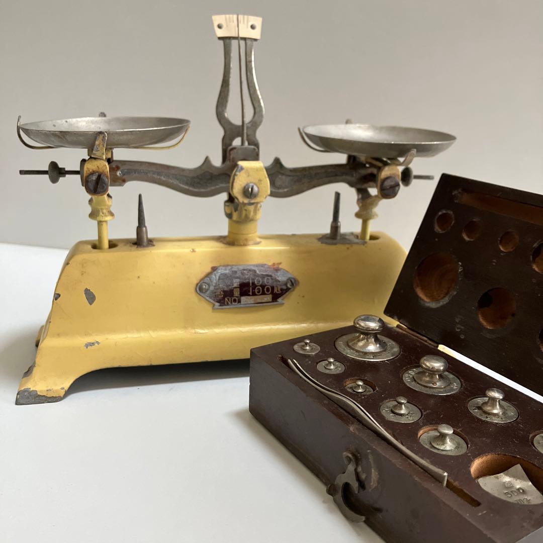 イギリスアンティーク 上皿天秤秤重り付きスケール ディスプレイ等に。