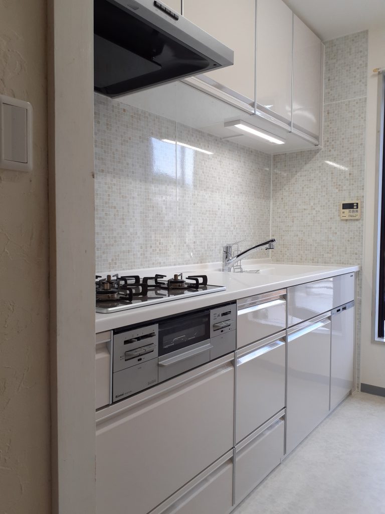 収納たっぷり満足のキッチン空間でスッキリ片付け上手に!北広島市戸建浴室 お風呂 洗面 水廻りのリフォーム札幌 キッチンワークス。
