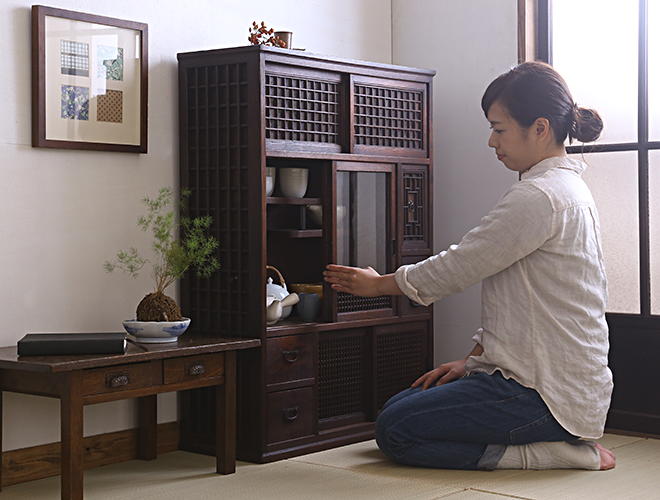 食器収納もおしゃれに 仙台箪笥専門店 欅 けやき 産業株式会社。
