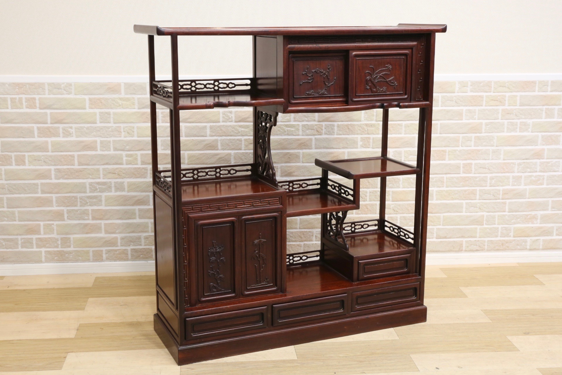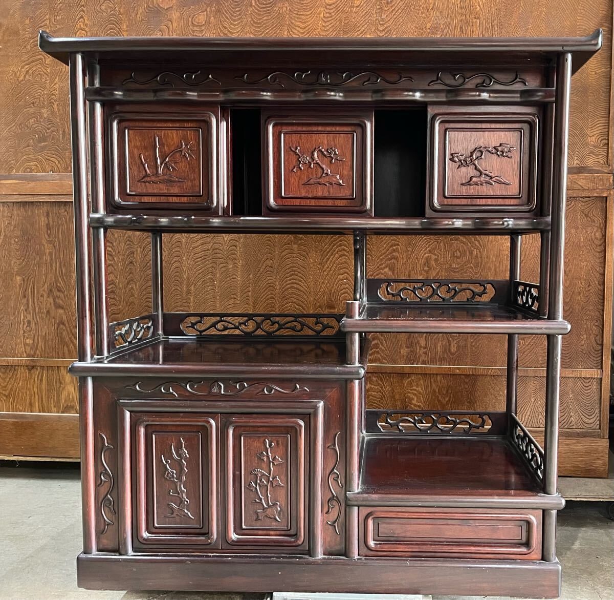 唐木家具 茶箪笥 飾り棚 中国骨董 唐草透彫り ビンテージ ヴィンテージ - メルカリ。