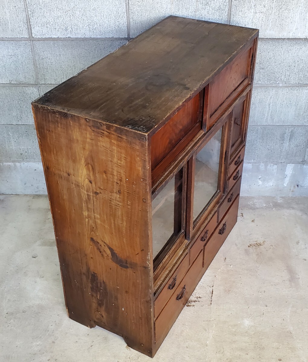 宮城県 引取限定品 和家具 茶箪笥 茶棚検索 アンティーク 食器棚 飾り棚 レトロ 古。