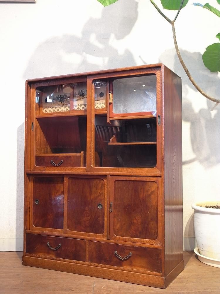 レトロ アンティーク 和モダン 茶箪笥 飾り棚 ディスプレイ棚 食器棚 - 東京 西荻窪 Northwest-antiques。