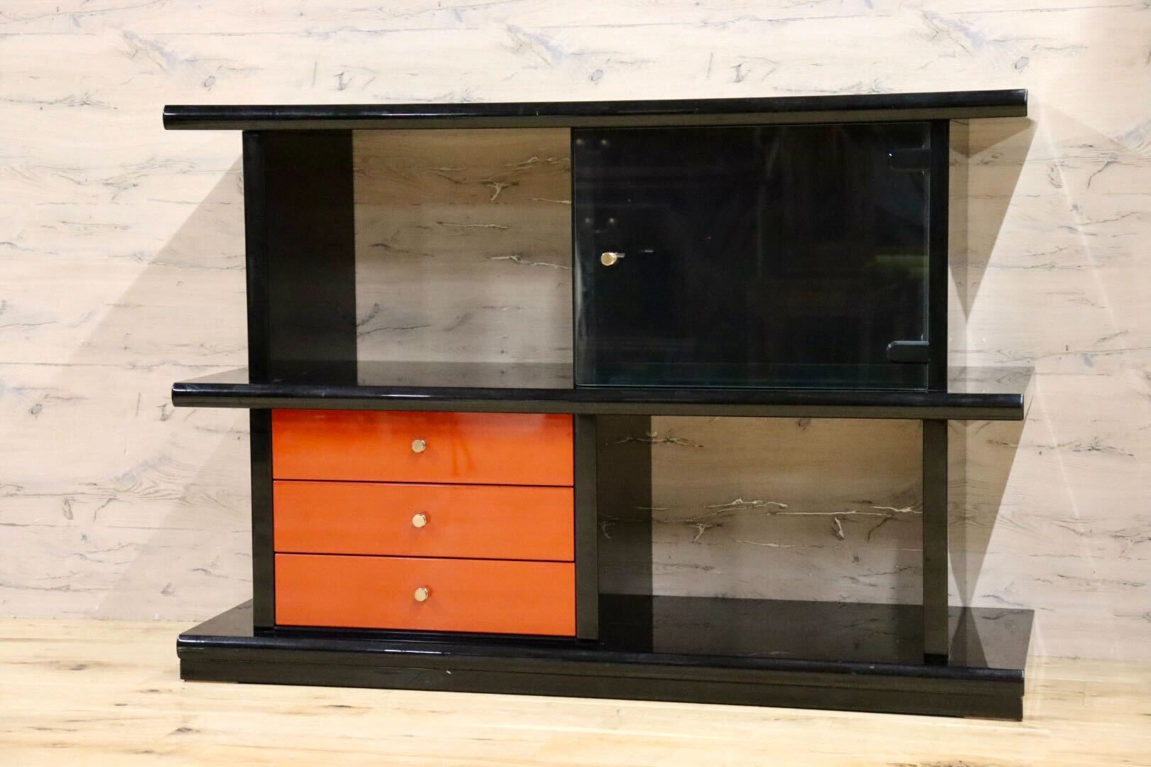 GMHS187C○輪島塗り 飾り棚 サイドボード 茶箪笥 茶棚 収納棚 朱色 伝統工芸 和家具 和モダン 和室 座敷 最高級 アンティーク。