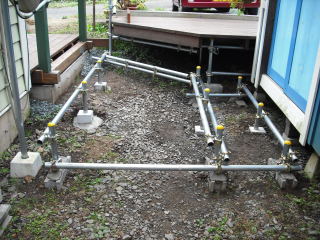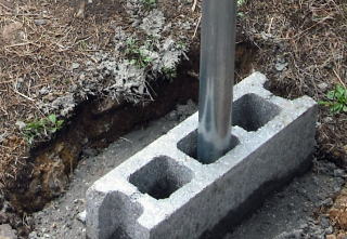 単管パイプの束石 69 単管パイプをクランプで束石に。