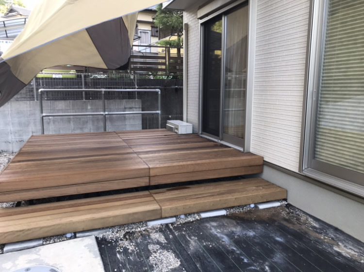 単管パイプを使ってウッドデッキDIY!施工方法・使用部材・道具のご紹介激安エクステリアクラブ。