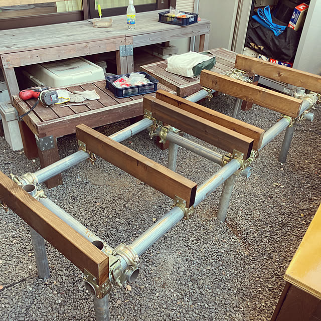 単管パイプで作るウッドデッキウッドデッキのDIYリーベ。