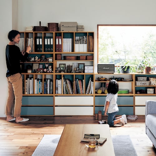 窓の下に置ける、背が高すぎない大容量の本棚。