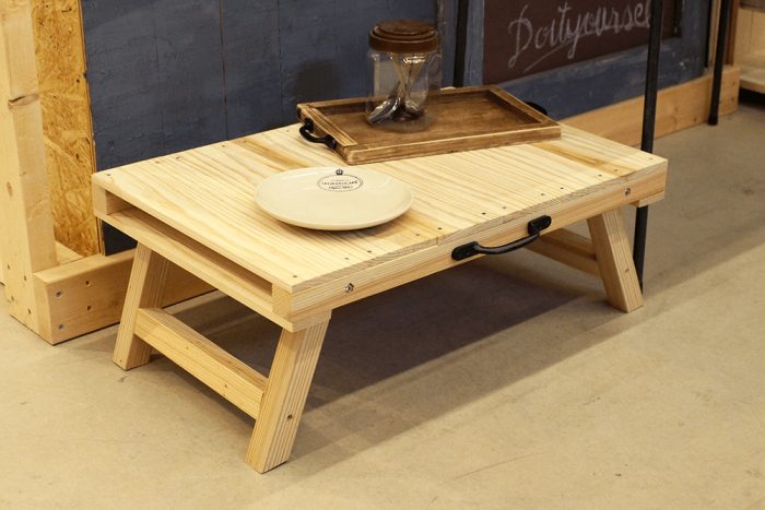 ワンアクションで折りたたみミニテーブルDIYFACTORY。