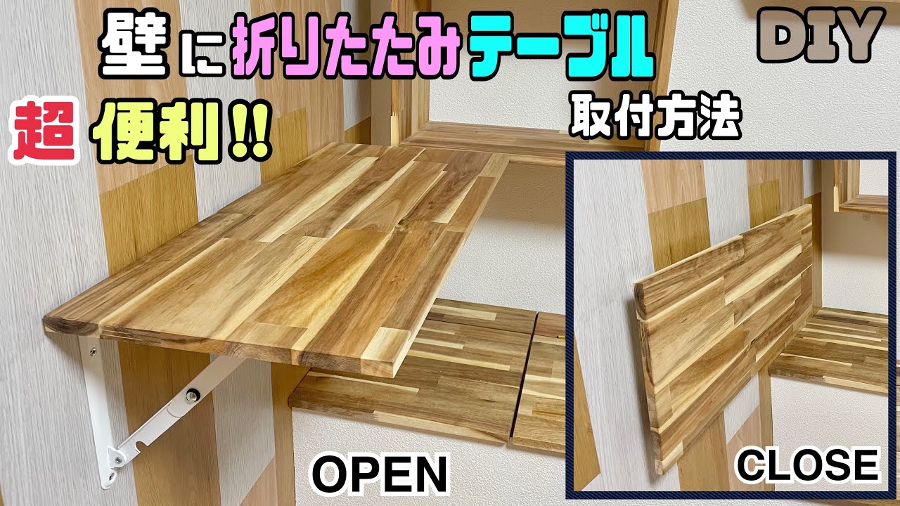 DIY折りたたみテーブル 超!!便利すぎる!!壁に折りたたみテーブルの作り方、取付方法!!ちょい置きができる、いらない時は壁にスマートに閉じれる!サイズもお好みに合わせて作れる diy収納。