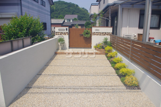 コンクリートのアプローチがある外構 ◇お庭の実例 - 福山市の外構、エクステリア、庭のデザイン と施工なら。ロケーションのある暮らしを。そらやLandscape。