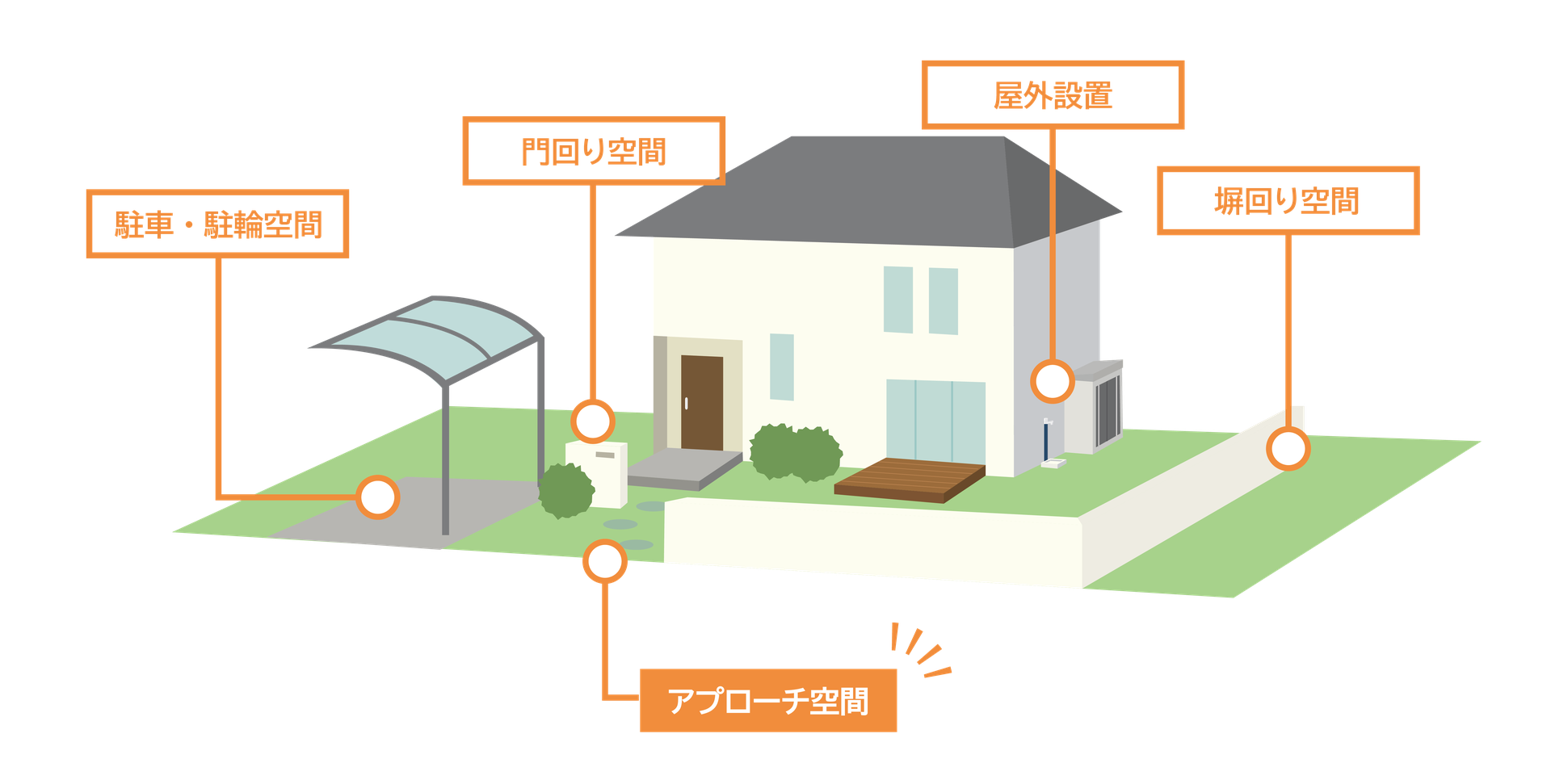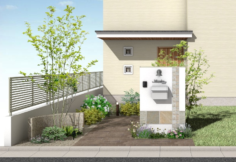 エントランス・アプローチ空間を楽しむオープン外構gokan plus。