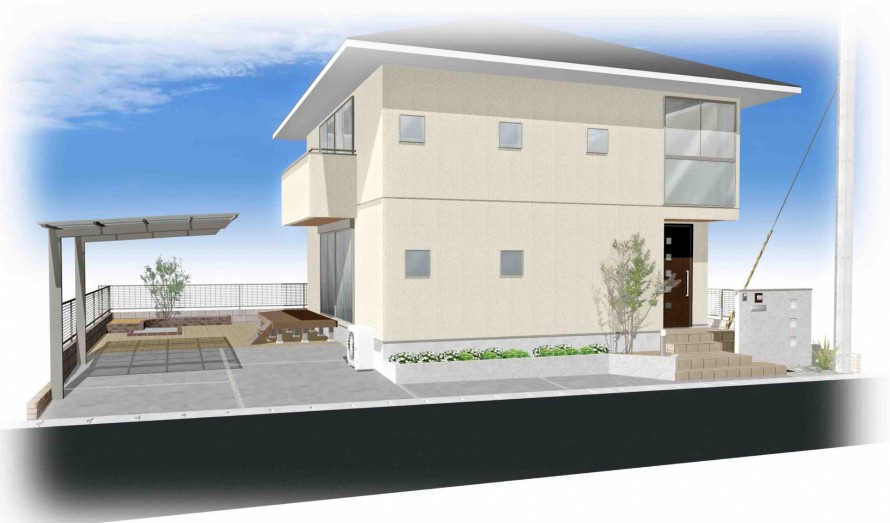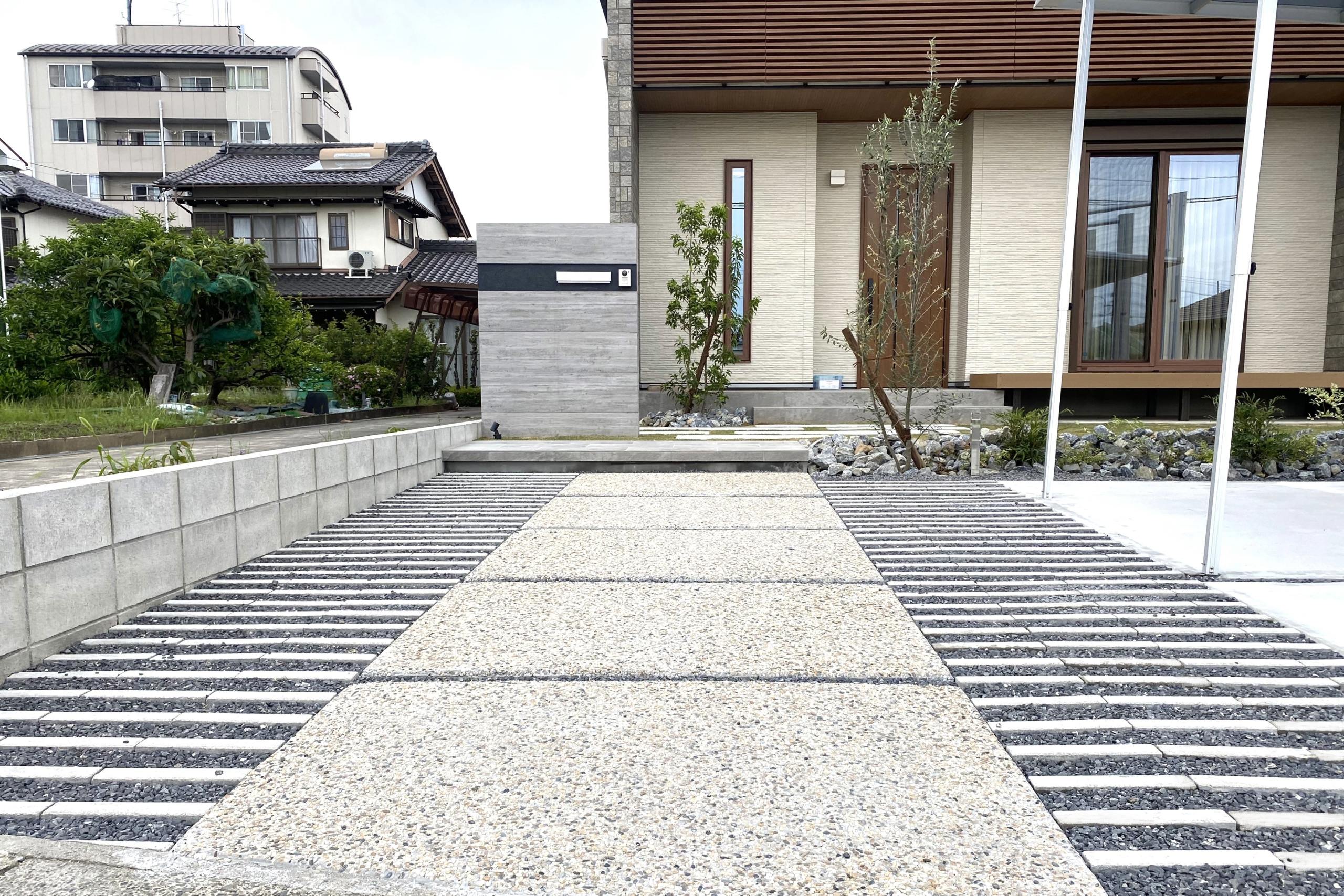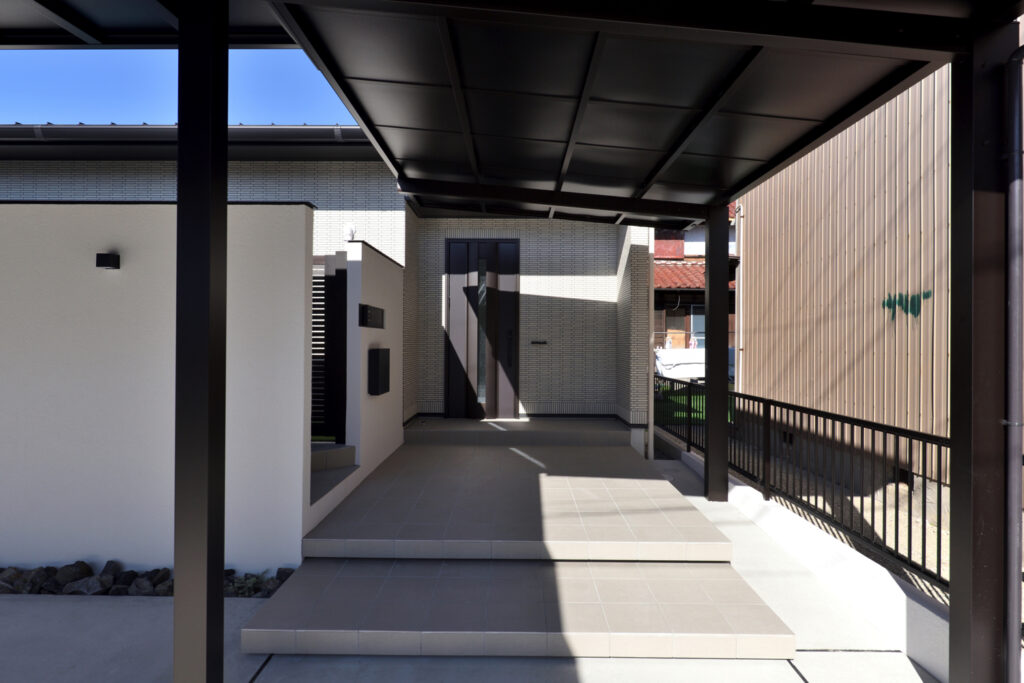 アプローチ兼駐車場おしゃれな外構デザインで、皆さんの家をもっと素敵に - 福山建築。
