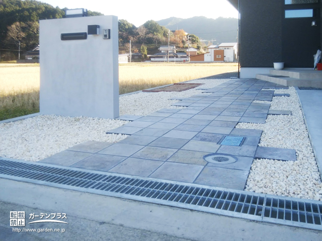 建築に沿ったシンプルなアプローチデザイン京阪グリーン滋賀・京都・大阪のエクステリア・ガーデン・外構工事。