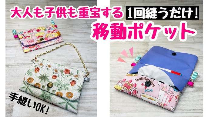1回縫うだけでティッシュケース付! 手縫いでもOK!大人にも子供にも便利な移動ポケットがこんなに簡単! How to make a movablepocket。