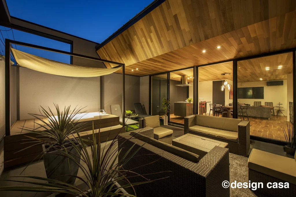 和の香漂うラグジュアリーモダンの家 中庭光井戸とテラスのある都市型住宅 神奈川県横浜市 重量木骨の家。