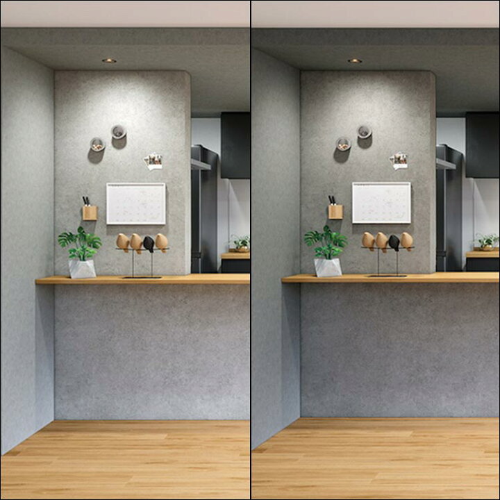モルタル柄の床材でカフェ風の部屋にサンゲツHM12005インテリアゴトウ。