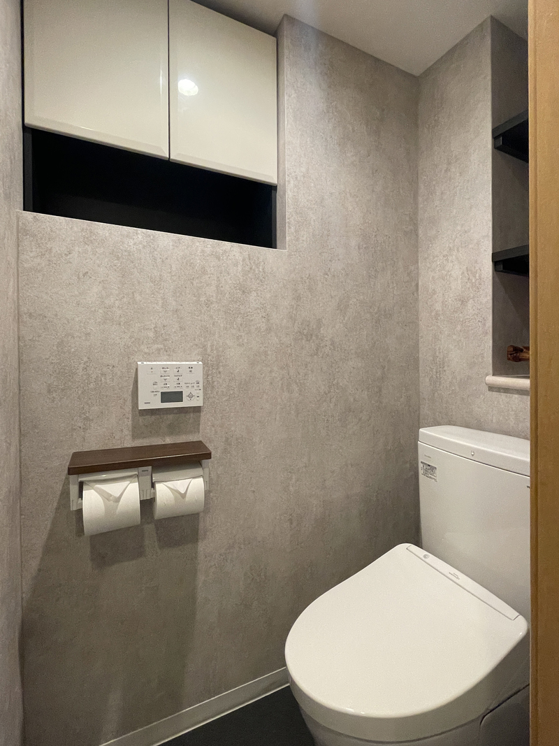 福岡工務店福岡 北九州 久留米 注文住宅 高気密 高断熱人気のモルタル風デザイン🩶 ◁◁品番紹介は2枚目〜 □トイレTOTOネオレスト □壁クロスサンゲツFE76410 □クッションフロア サンゲツHM11105 後で見返したい場合は右下の『リボンマーク』を。