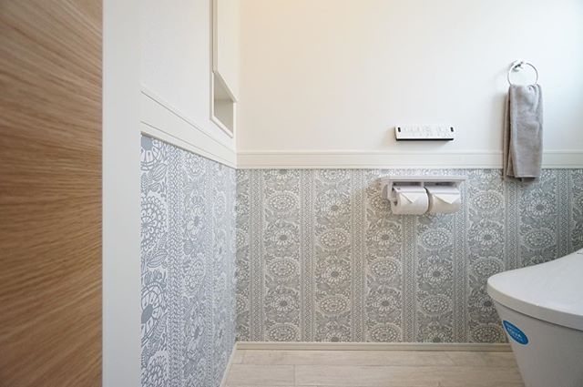️トイレのアクセントの腰壁クロス。 第一建設hibikilivingdトイレアクセントクロスグレートイレ収納腰壁LivingDリビングディー第一建設住まいと暮らしのコミュニティカンパニ。