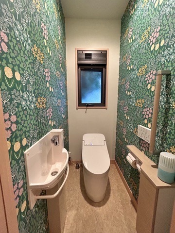 1階広々トイレ!アクセントクロスで可愛くオシャレなトイレに!~京都市左京区K様邸トイレ改修工事~サンコウホーム。