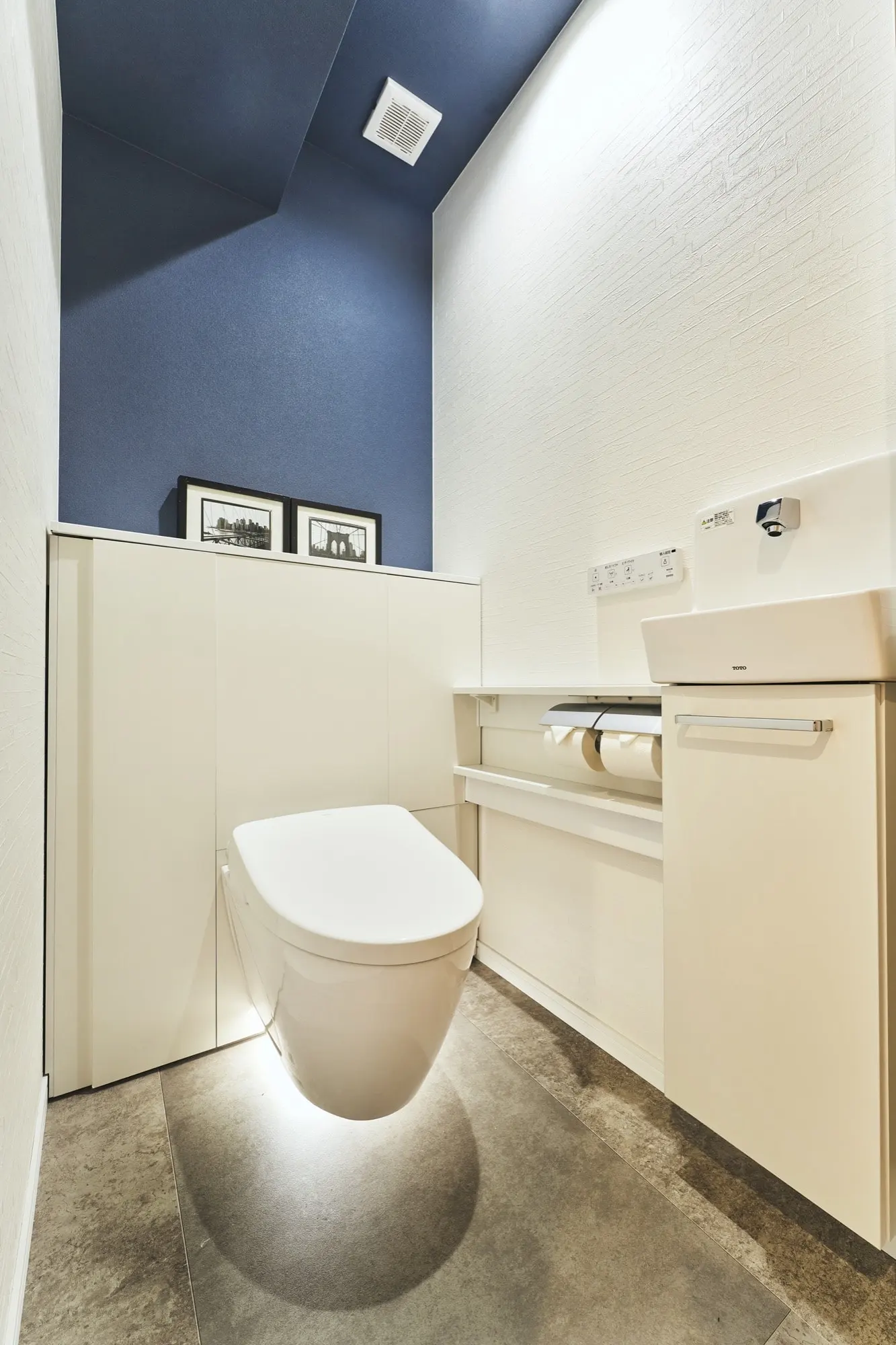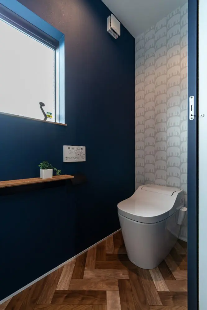 ネイビーのアクセントクロスで失敗しない!トイレリフォーム│越谷市施工事例埼玉のリフォーム店越谷市・墨田区・さいたま市ナカノヤ。