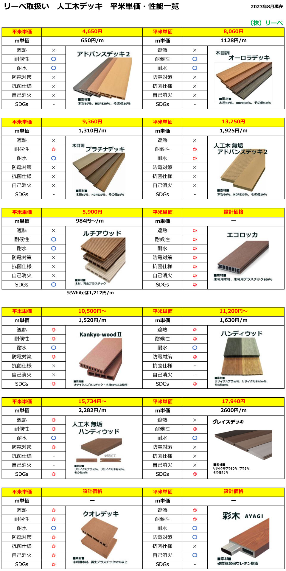 デッキ材の平米単価一覧 │ 激安通販のリーベプロ。