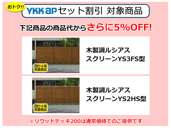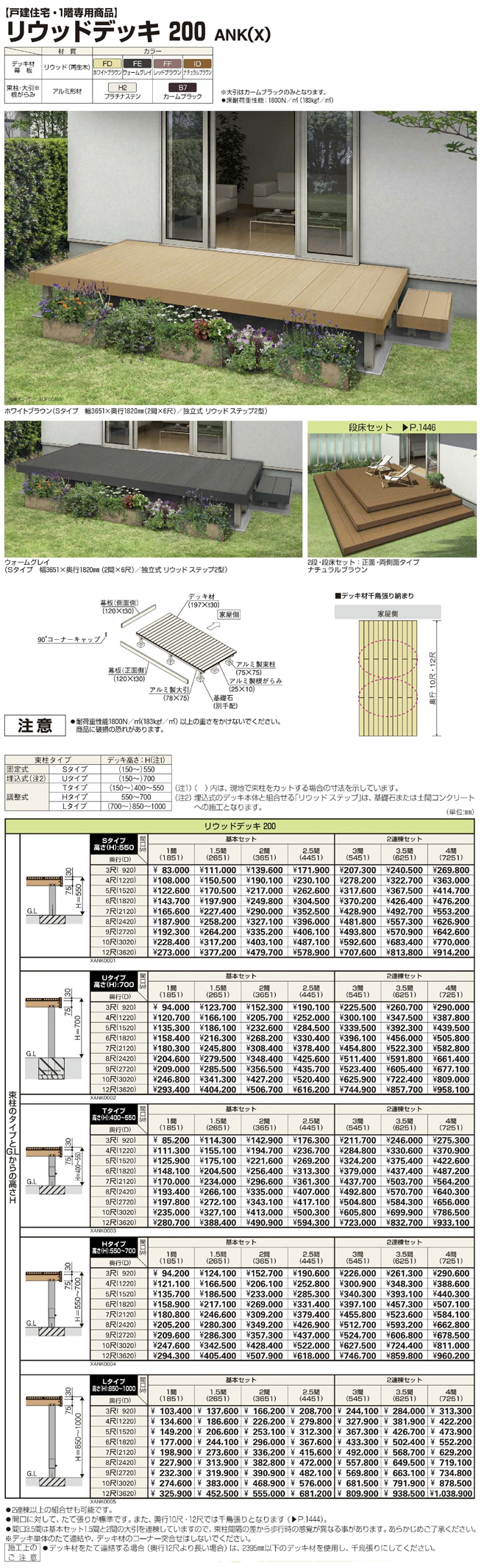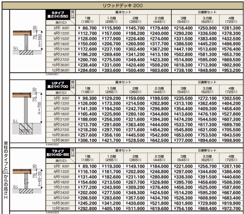 リウッドデッキ200」のサイズ別価格表庭ファン。