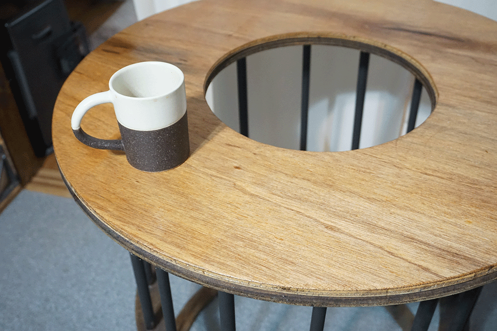 丸型 テーブル付きストーブガード アラジン トヨトミ 対応 対流型 石油ストーブ オリジナルストーブガード サロンテーブル オーダー デザインおしゃれ 鉄 アイアン 日本製ストーブガード専門店 武友工房。
