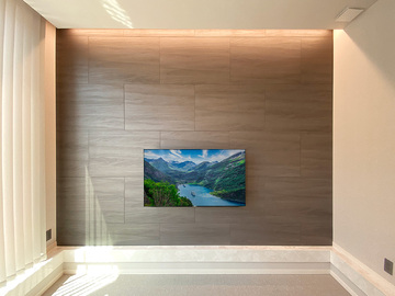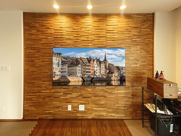 ウッドタイル壁での壁掛けテレビ 工事例。