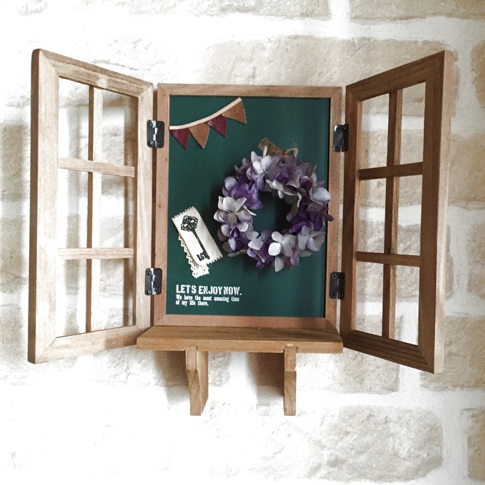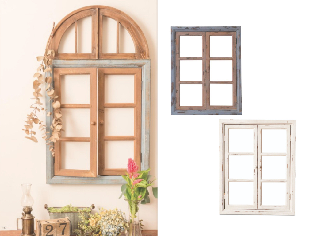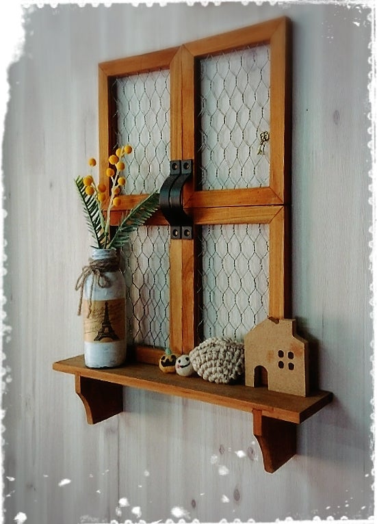 窓枠 飾り窓 窓オブジェ ハンドメイド雑貨 インテリア雑貨 ナチュラル雑貨 小窓を飾る雑貨。