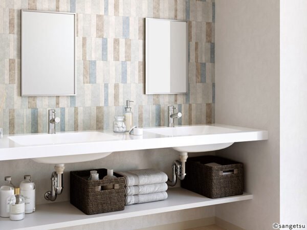 洗面所におすすめの壁紙・クロスの事例集 おしゃれ&防水仕様など。