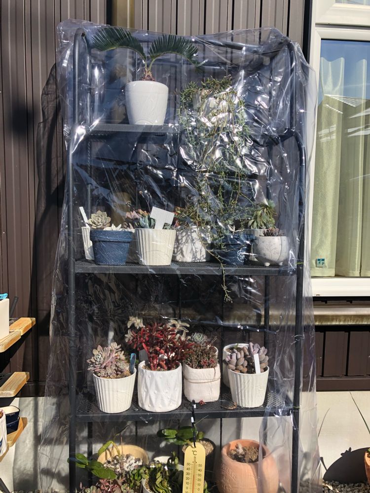 IKEAの棚と 100均テーブルクロスで簡易温室 完成!🍀GreenSnap グリーンスナップ。