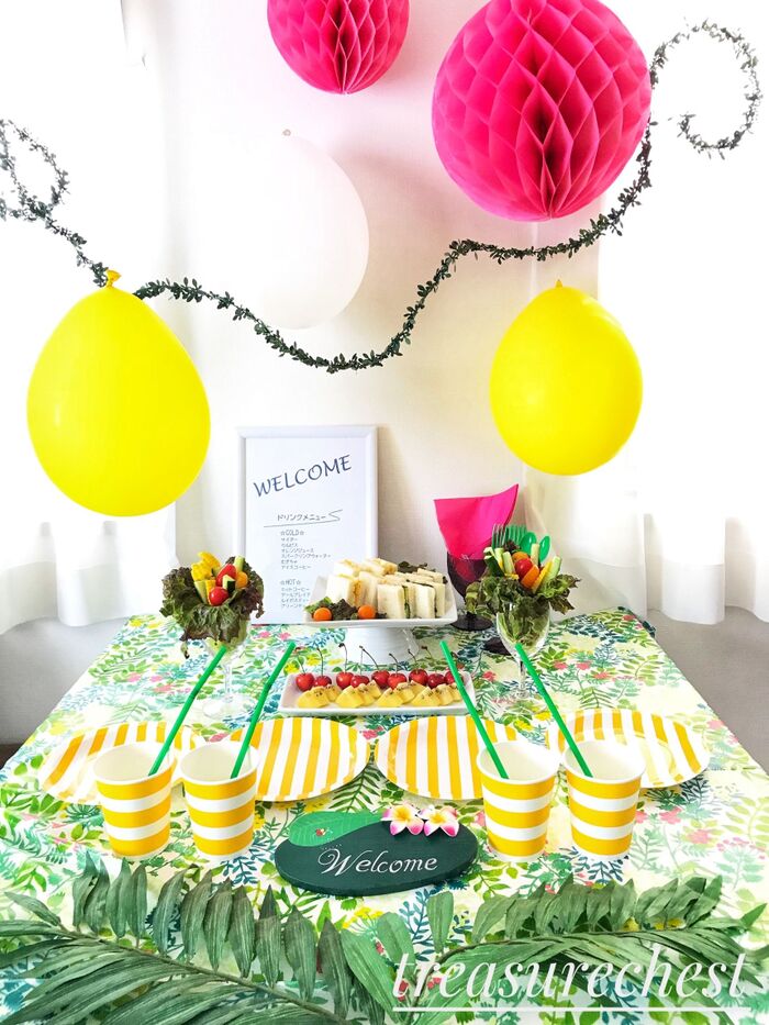 100均テーブルクロスが大活躍☆夏にぴったりトロピカルパーティー!インテリアのアイデア暮らしニスタ。