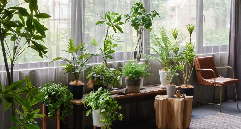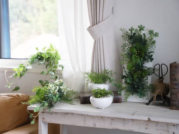 フェイクグリーンインテリアのアクセントになる観葉植物・造花。