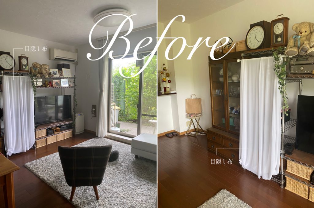 簡単DIY 突っ張り棚を目隠しする方法。賃貸OK!釘も工具も不要ですウチブログ。