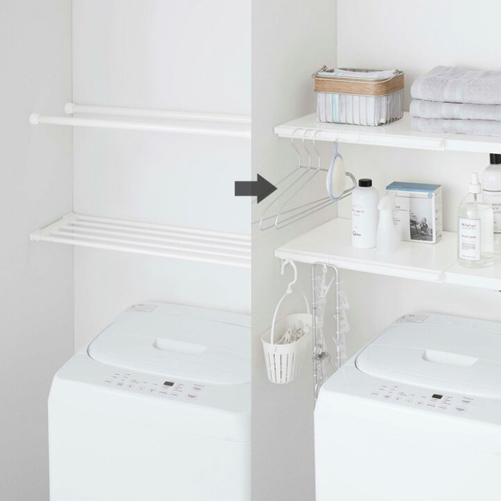 超簡単 トイレと洗濯機の上に、突っ張り棒を使って棚を作ったよ - フェリシモ女子DIY部ブログ。