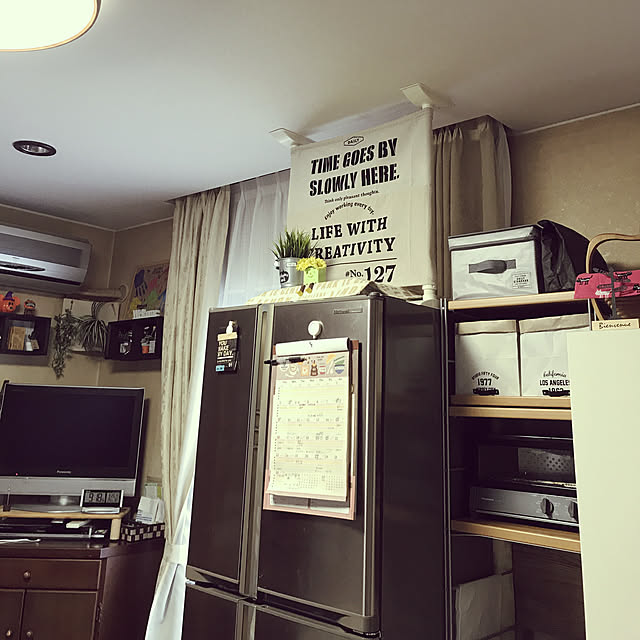 お洒落で簡単☆カフェカーテン 棚の目隠し の作り方 - conote life。