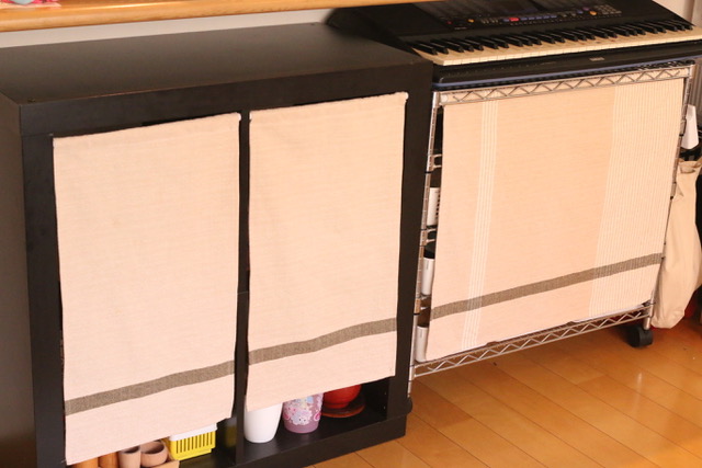 100均ダイソーの突っ張り棒で隠す収納に。おしゃれなカーテンの作り方Aya blog-猫と料理と植物と。