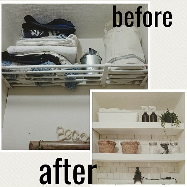 賃貸DIY トイレの上にある棚の散らかりをダイソーアイテムで綺麗に隠す。の巻! - ものものブログ。