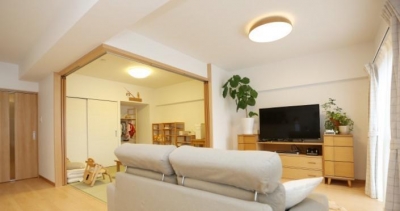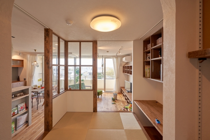 LDK隣接の和室を室内窓付きの洋室へ。子育て世代のマンションリノべ実例LEE。