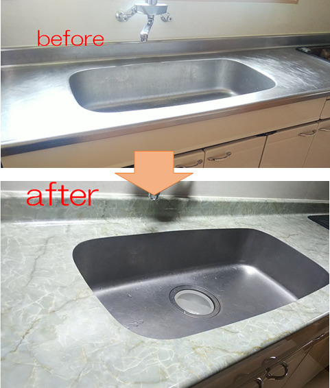 施工事例 キッチン天板シート貼り株式会社バスシステムデザイン研究所。