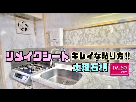 リメイクシート貼り方!!綺麗な貼り方講座!!キッチンの壁をDAISOさんのリメイクシート貼りました!!大理石柄 リメイクシートDAISODIYリメイクシート DAISO DIY。