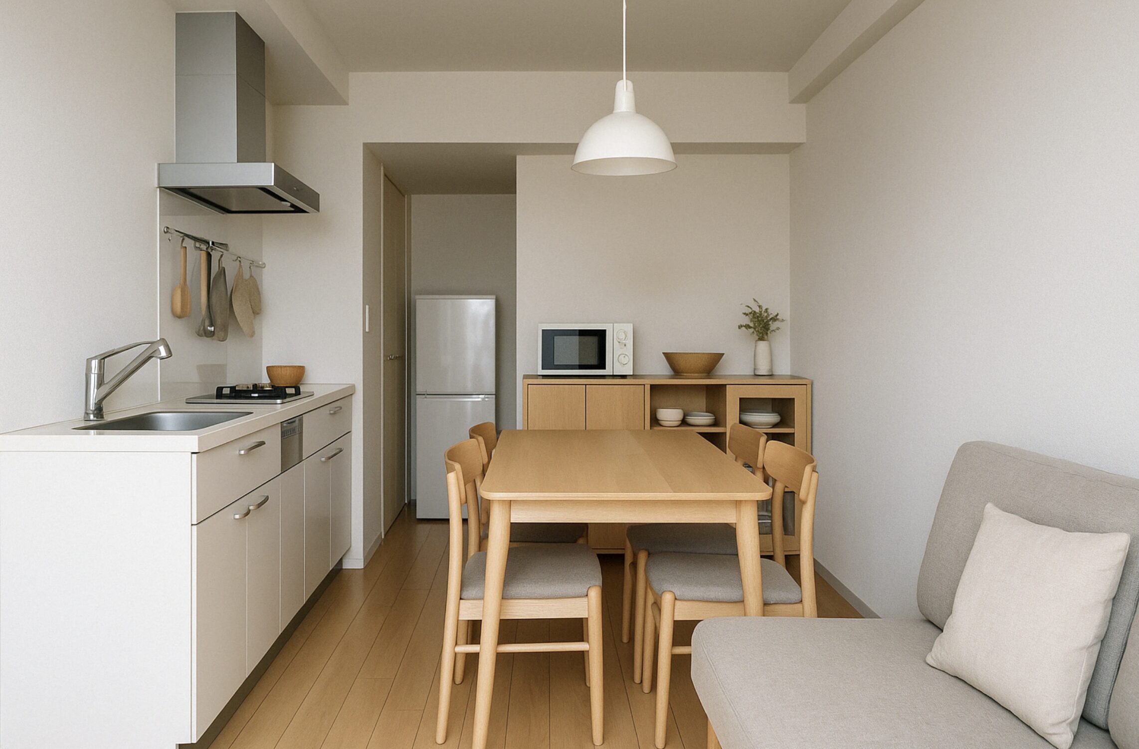 ダイニングキッチン 団地・賃貸の狭い壁付けキッチンのレイアウト術!12畳LDKで検証。