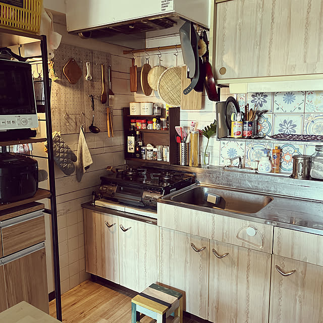 キッチン収納 築60年団地 築古でもお洒落に魅せる収納アイデア 3DK 3人暮らし DIY。