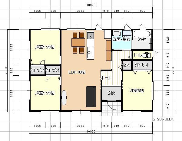 平屋の間取り 人気の3LDKの南玄関を考察。