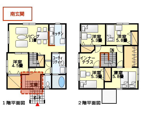 南玄関 間取り例メリット・デメリット解説付き間取り図集。